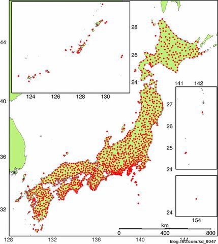 GeoNet系统日本超过1200个平均密度20km,主要用于地震监测和预报,控制测量,建筑及工程测量