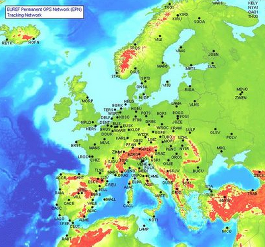 EPN系统欧洲未知覆盖整个欧洲大陆,由连续观测高精度的GPS/GLONASS接收机构成的若干站组成,是由多国参加实现精确地理参考大地测量的基础