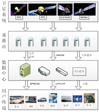 地基增强差分系统由连续运行基准站网、系统控制与数据中心、数据通信网络以及用户应用子、系统等组成,各子系统的定义与功能介绍如下。
