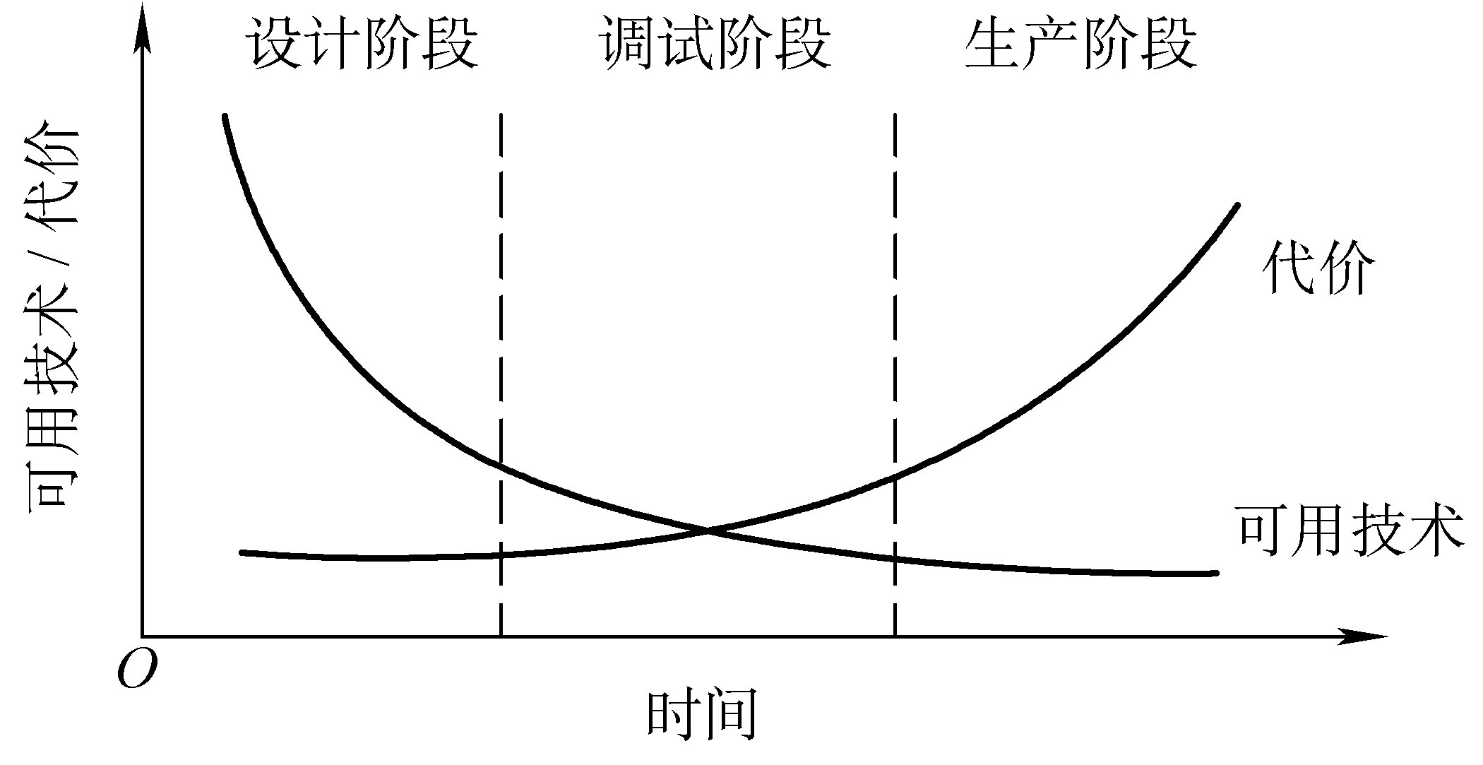 在产品设计开发的不同阶段,可采取的技术手段及付出的代价是不同的。