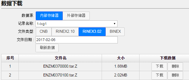 接收机提供三种下载数据的方式:1、FTP下载(速度最快);2、页面下载;3、USB下载。